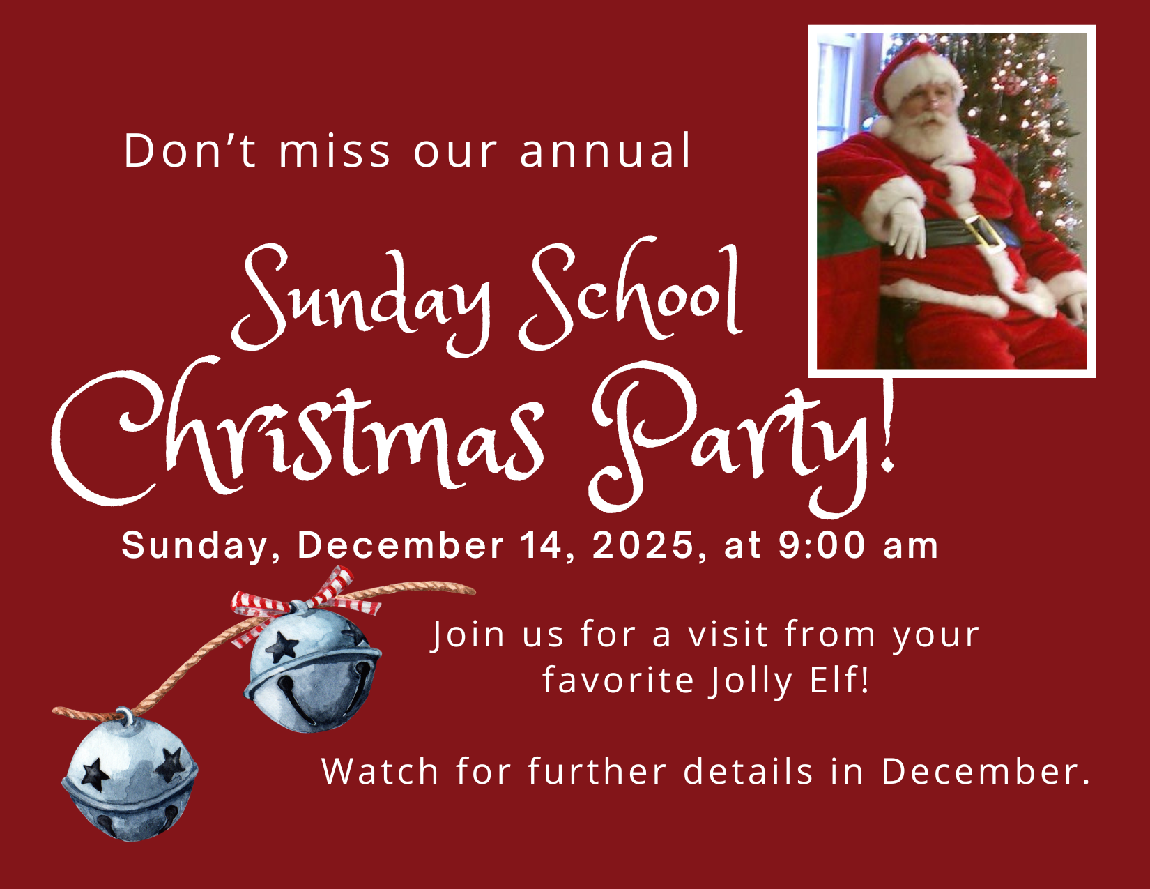 (Sunday School will be held during the regular time on December 22, from 9:00-10:30am. There will be NO Children’s Sunday School on 12/29/24.)